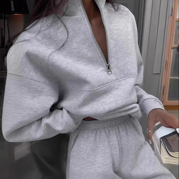 Nuevo en prendas de vestir, sudadera, ropa de invierno, traje cálido para mujer, ropa de manga larga con cremallera, pantalones informales, conjunto de 2 piezas