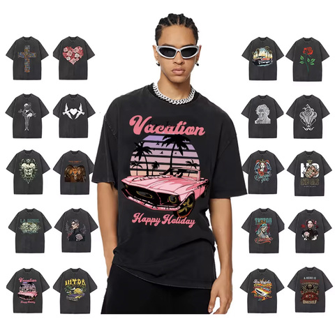 เสื้อยืดผ้าฝ้าย100% คุณภาพสูงสำหรับผู้ชาย Y2K สตรีทแวร์พร้อมยาแก้ไอจำนวนมากสำหรับเสื้อผ้าผู้ชายทรงโอเวอร์ไซส์